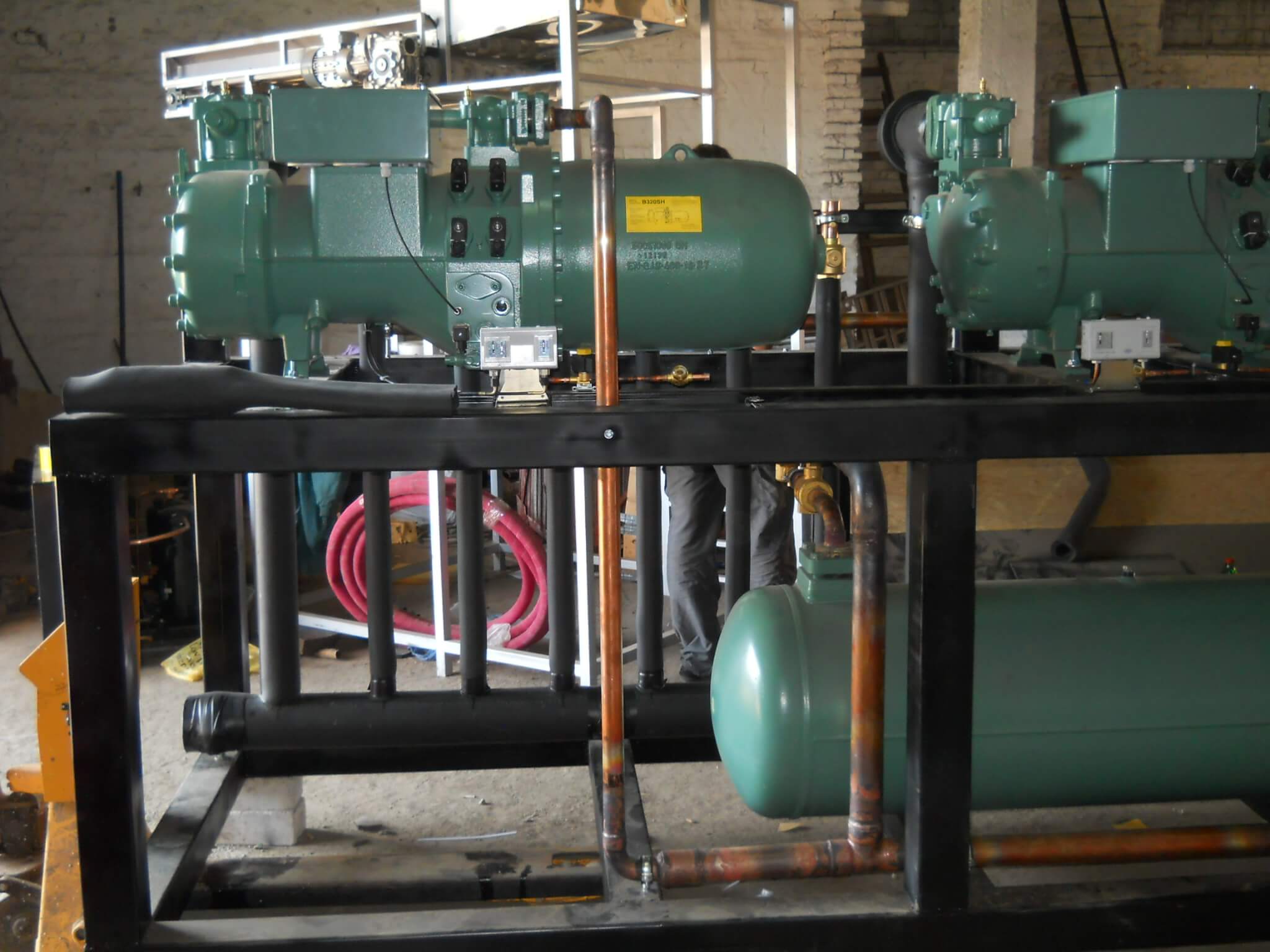 По предпочтению заказчика холодильные машины были спроектированы и собраны на компрессорах Немецкого производства Bitzer и теплообменном оборудовании Guntner.
