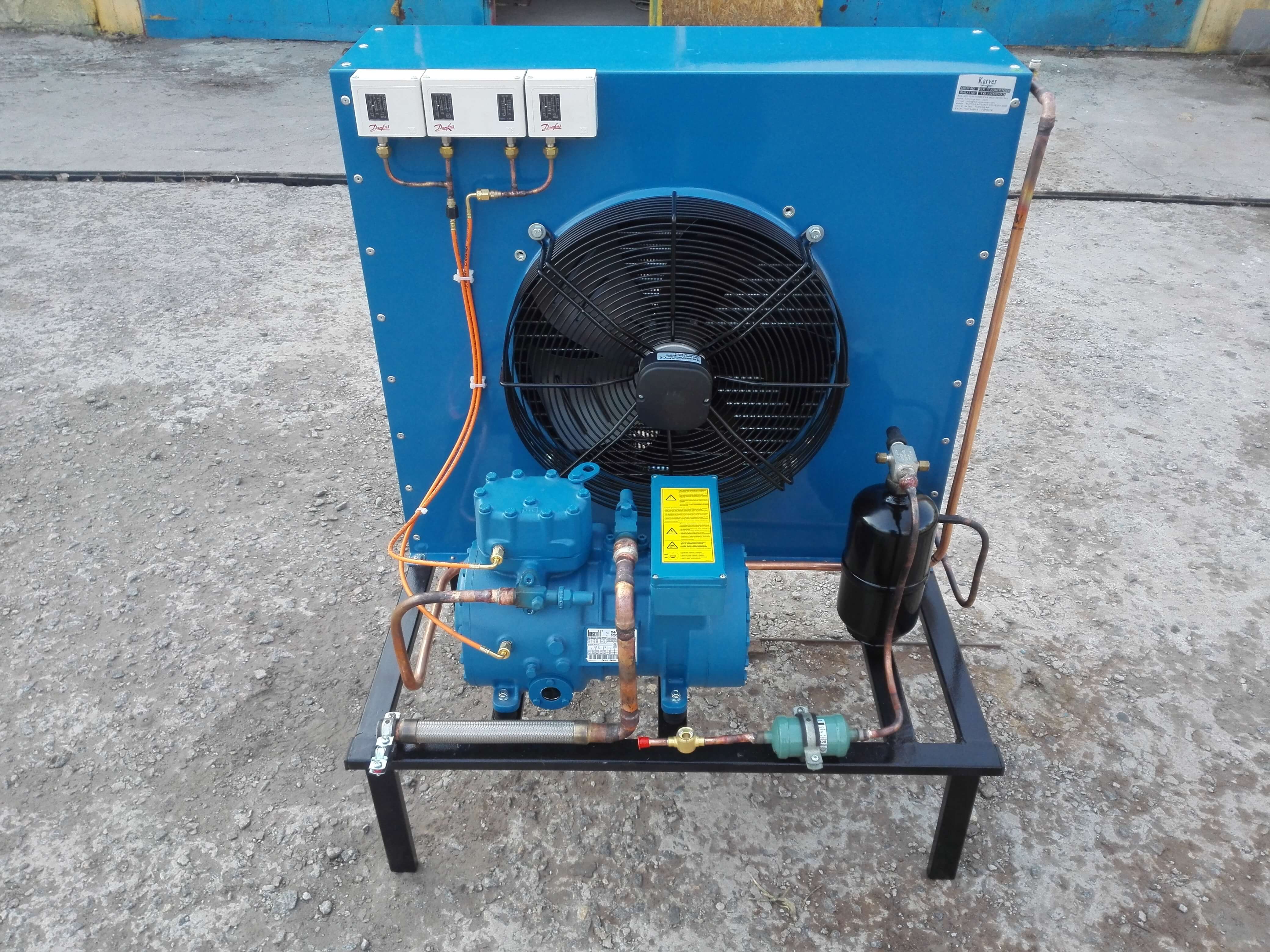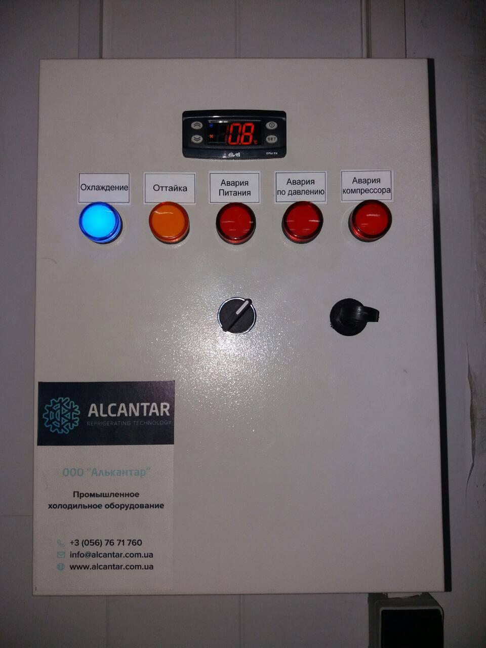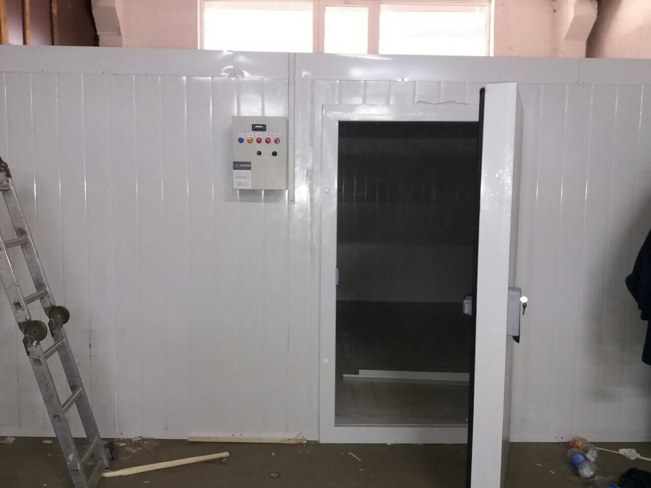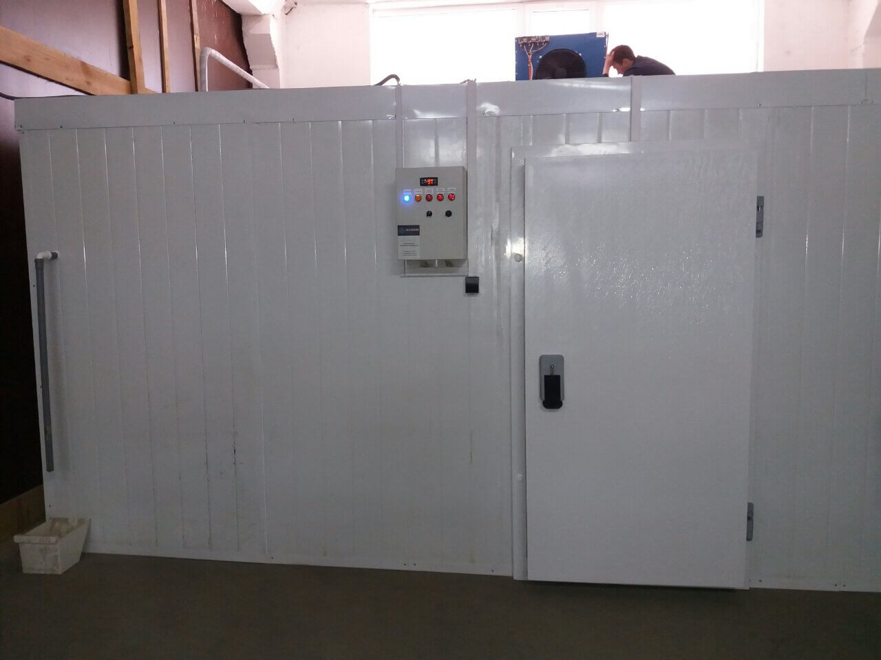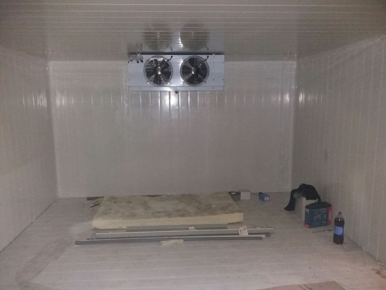 Данная холодильная камера состоит из ппу панелей и дверного блока украинского проиводства (серия эконом). Холодильное оборудование включает в себя воздухоохладитель итальянского производства ECO Luvata, и компрессора Frascold. Задача — поддержание температуры -18´С круглый год. Выше описаный набор оборудования прекрасно справляется с поставленой задачей.
